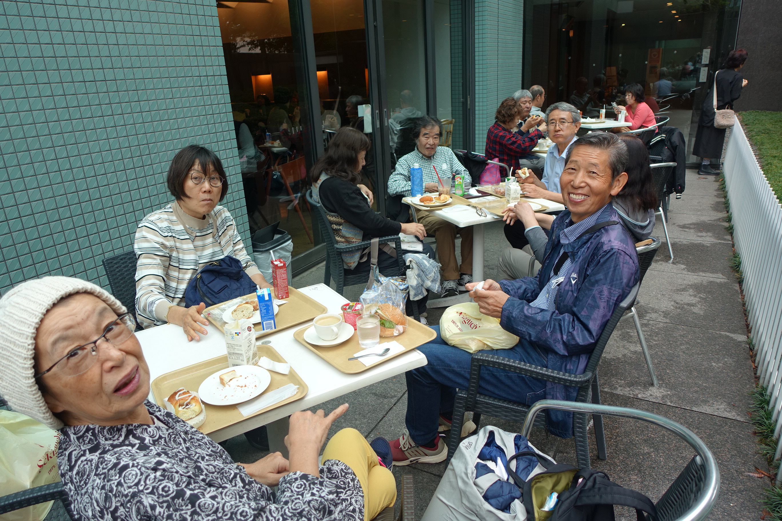 フランスパン日本発祥の店と云われる関口パンのテラス席にて、