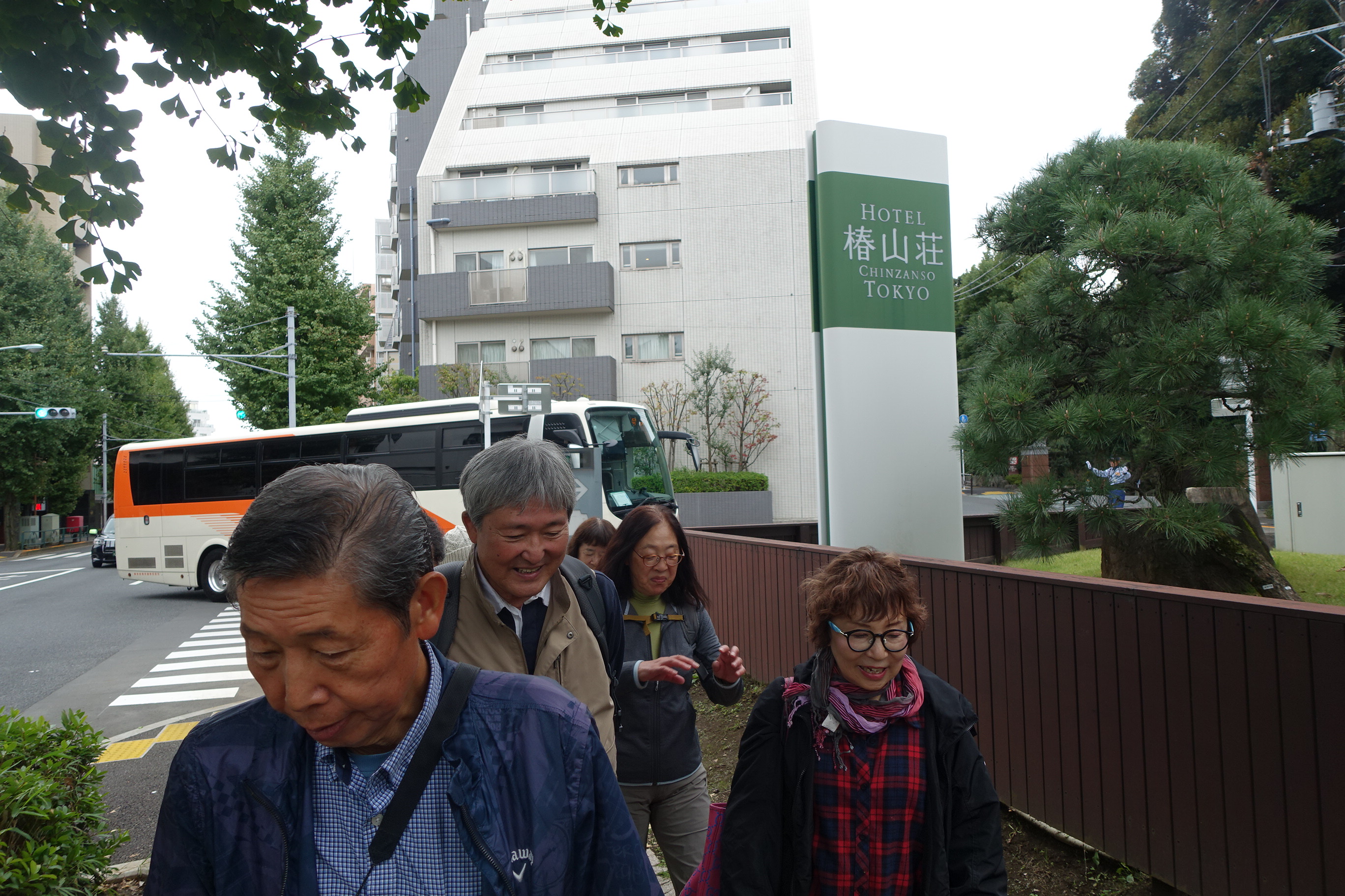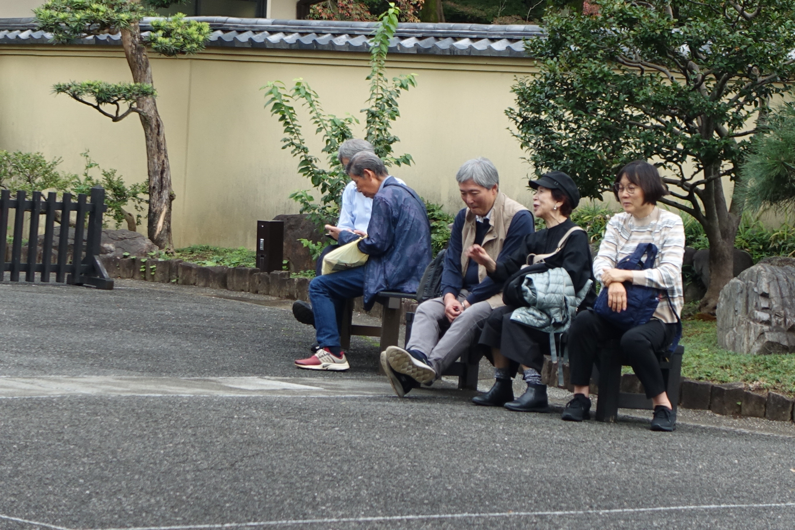 「とにかく広いね、大きいね」と目白通り歩道上にてしばし立ち話と一休み。