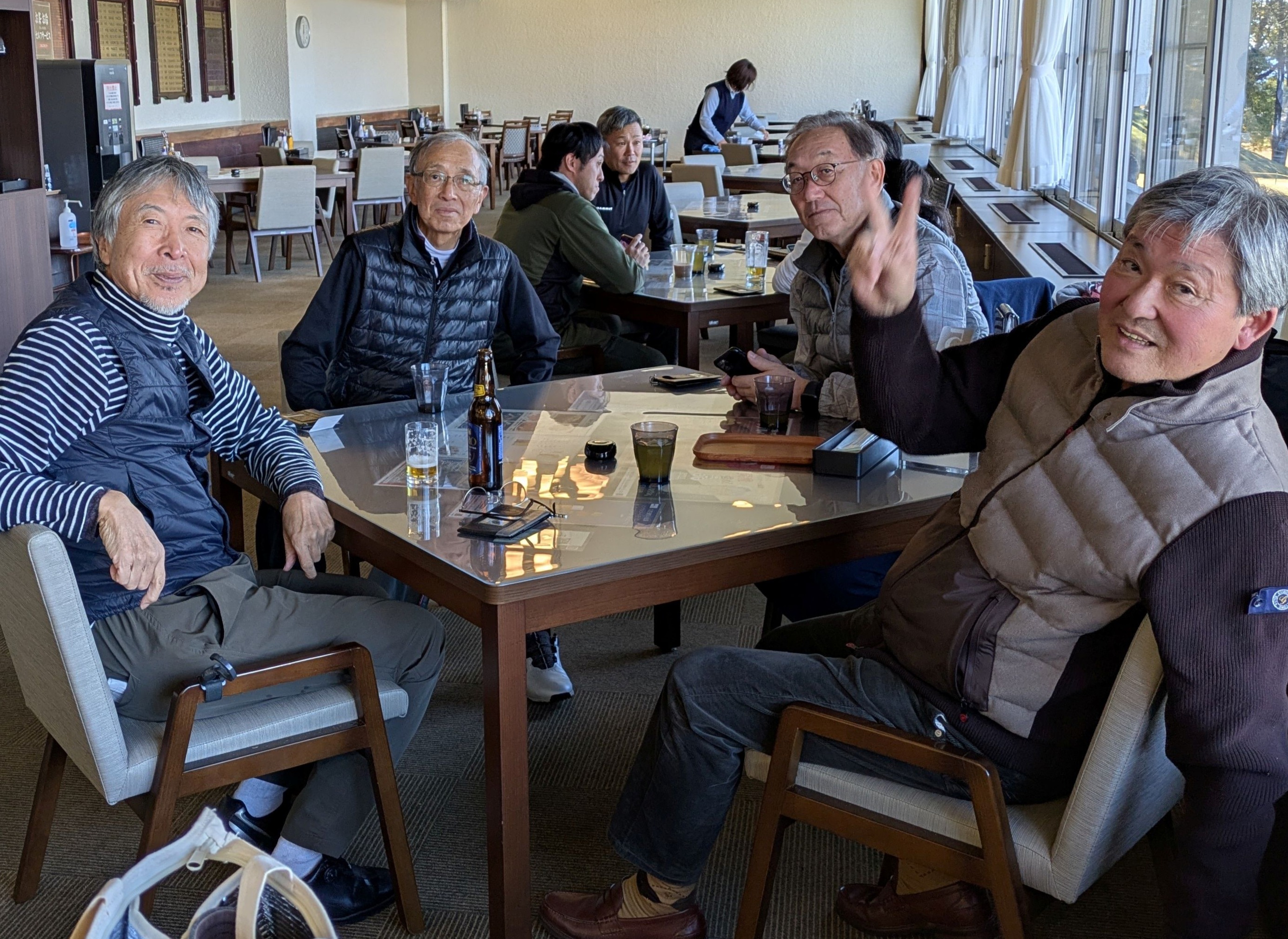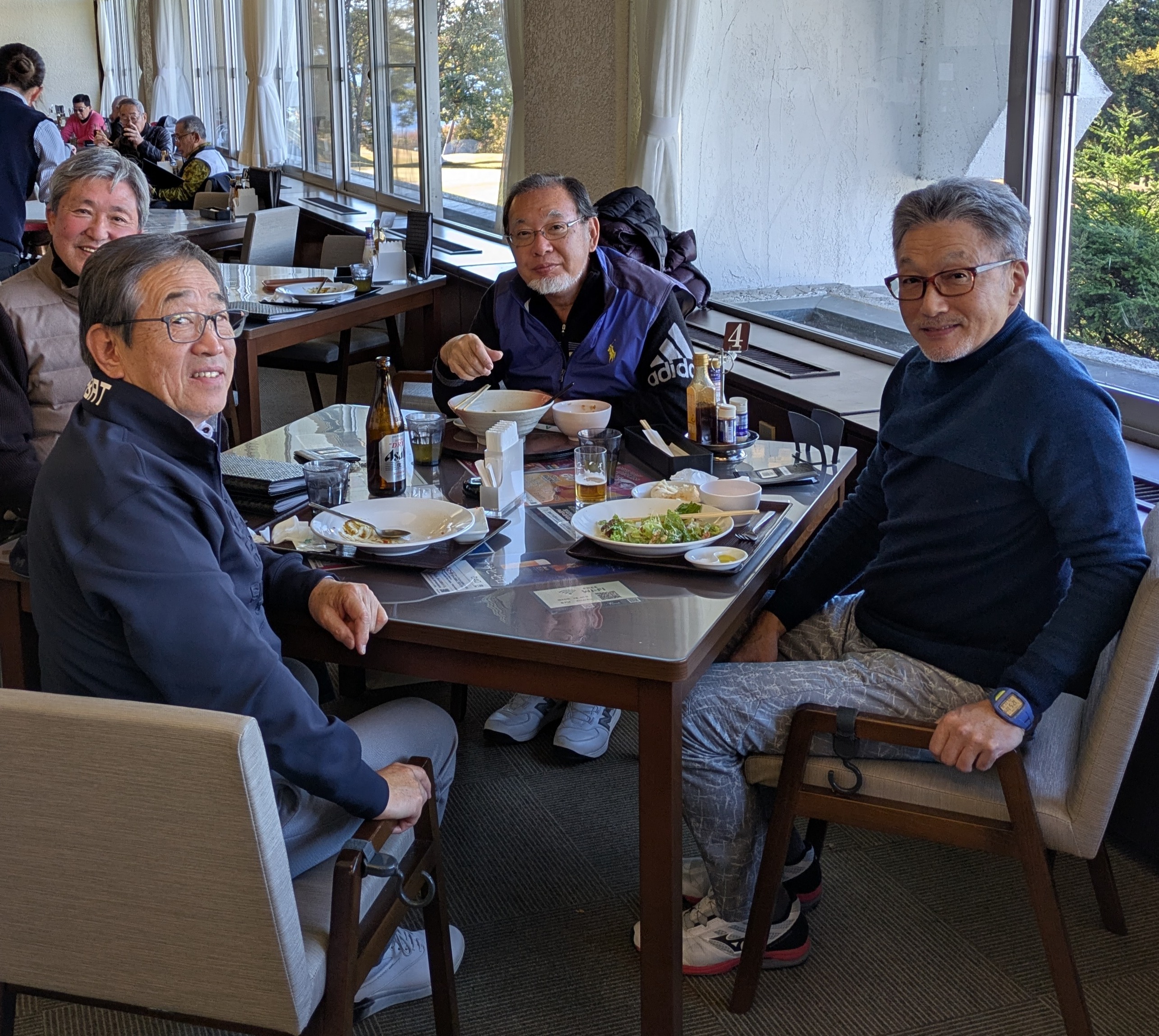 ハーフ終了時のランチタイムのひと時です。ゴルフに参加していない石田勝弥君が乱入。