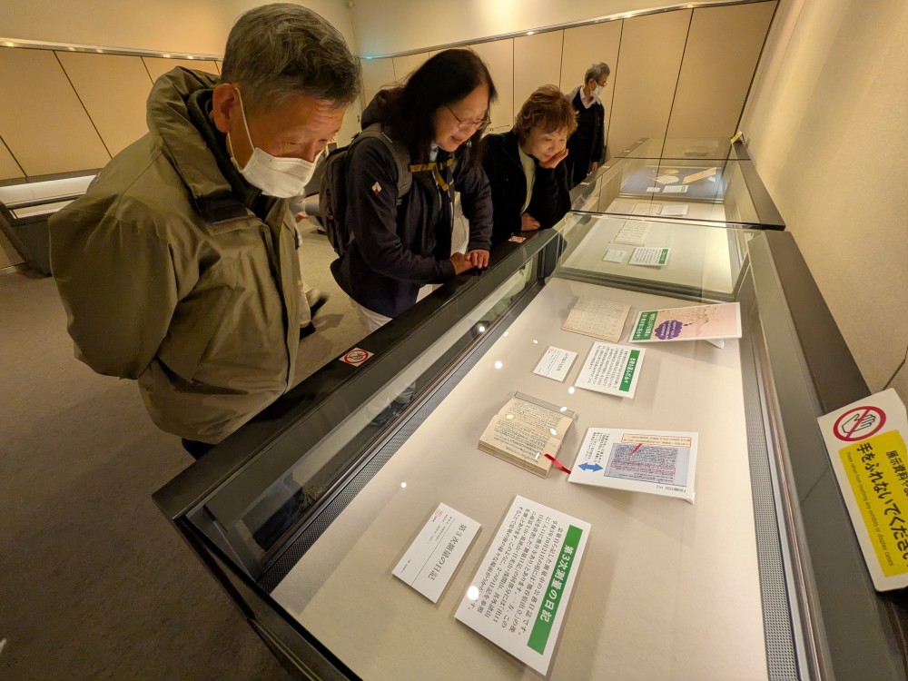 銚子を後にした一行は、香取市佐原にある「伊能忠敬記念館」へ。伊能忠敬は江戸時代、酒造業などの家業を充実させた後に隠居。50歳で江戸に出て、幕府天文方で19歳下の高橋至時 に入門。測量術や天文学を学んだ後、55歳から71歳まで全国を歩き測量を続け、日本地図を作りました。「人生、二毛作」の偉業をたどる展示は見応えがありました。